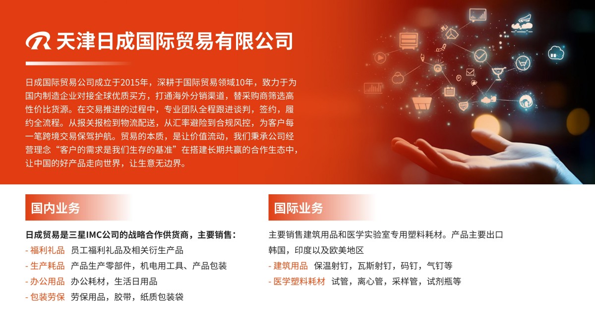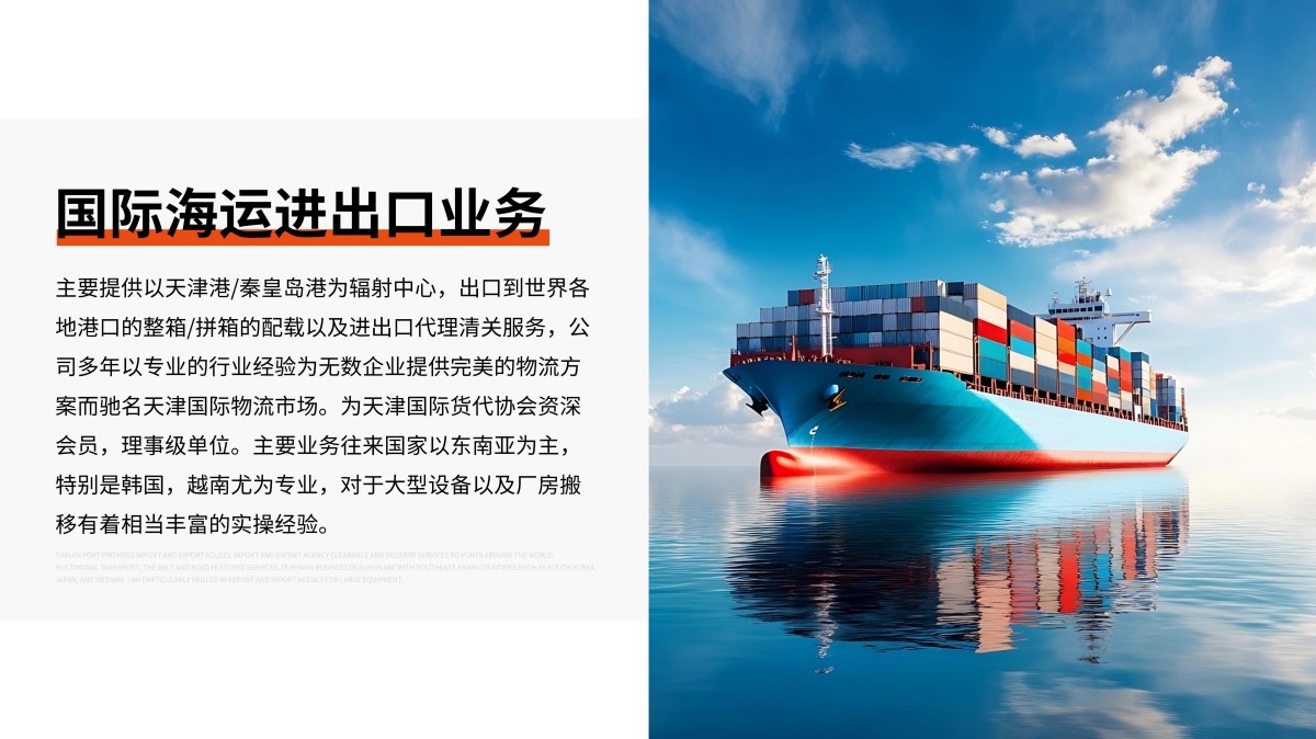 天津日成国际货运代理有限公司是由国家商务部批准的一级国际货运代理企业。公司注册资金为500万元,并具备签发提单的无船承运人资质。自2005年成立以来,本公司秉承“更快、更精准、真诚的服务”的服务宗旨,谨奉“客户的需求是我们生存的基准”的经营理念。以热情的服务态度、高效的服务体系以及良好的行业信誉赢得了市场的赞誉。